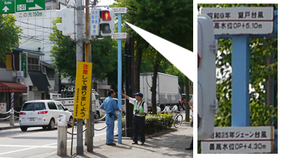 過去の災害の記録 南海トラフ地震はさらに約1.3m高い(OP6.3m)。 |
