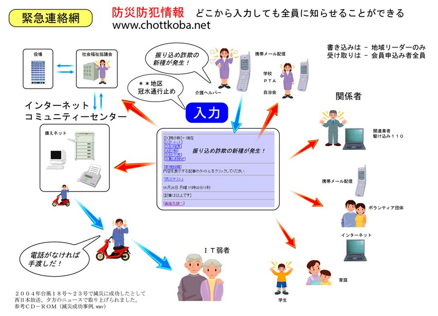 ●『緊急告知システム』などの有効な手段を使って、情報の共有化を図ります。