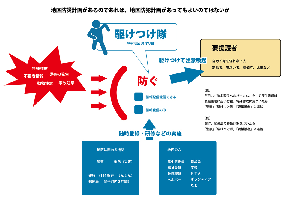 ●地域性に合った場所と時間で見張りを立て、的確な情報を迅速に伝え合い共有化を図ります。