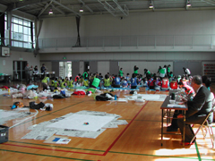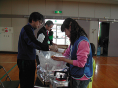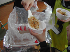 この日の参加者の昼食は非常食となりました。アルファ米を熱湯で蒸すとおいしい五目飯の出来上がり。お味の方は、「けっこういける」と参加者の声。