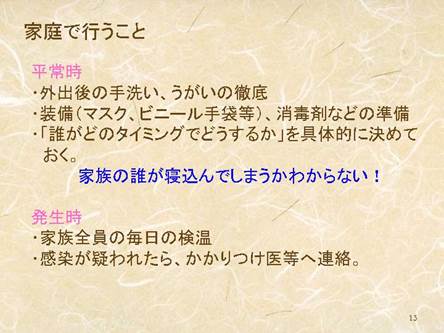 STEPT〜Y までの活動を 地域の皆様のご協力のもとに実施し、地域コミュニティーづくりを行ってきました。平成20年度より、今後、起きるであろう鳥インフルエンザ(人から人)のような感染症の蔓延期に巨大災害が起きるような複合型の対処法を目指しています。