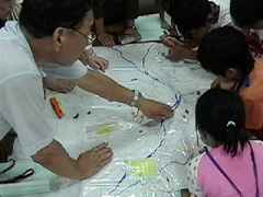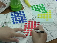 B 自分の家の位置にシールを貼って避難場所までを確認。