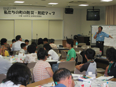 9時30分 あいさつ/説明 10時00分 地図作りの説明 10時20分 今どれだけ知ってる? 11時20分 消防職員からのお話 11時40分 警察職員からのお話 12時00分 昼食・休憩 12時50分 点呼・注意 13時00分 各チーム出発 15時00分 集合・休憩 15時10分 ディスカッション 16時00分 終了