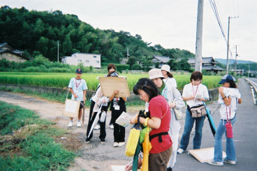 | b 実際に歩いてキケン個所、安全な場所、イザとおいう時に役立つ道具を確認。 |